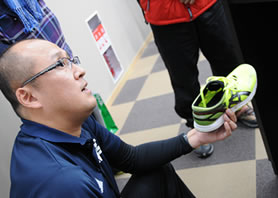 靴ひもの結び方や中敷などによってもパフォーマンスに差が出ることなどを学んだ後、